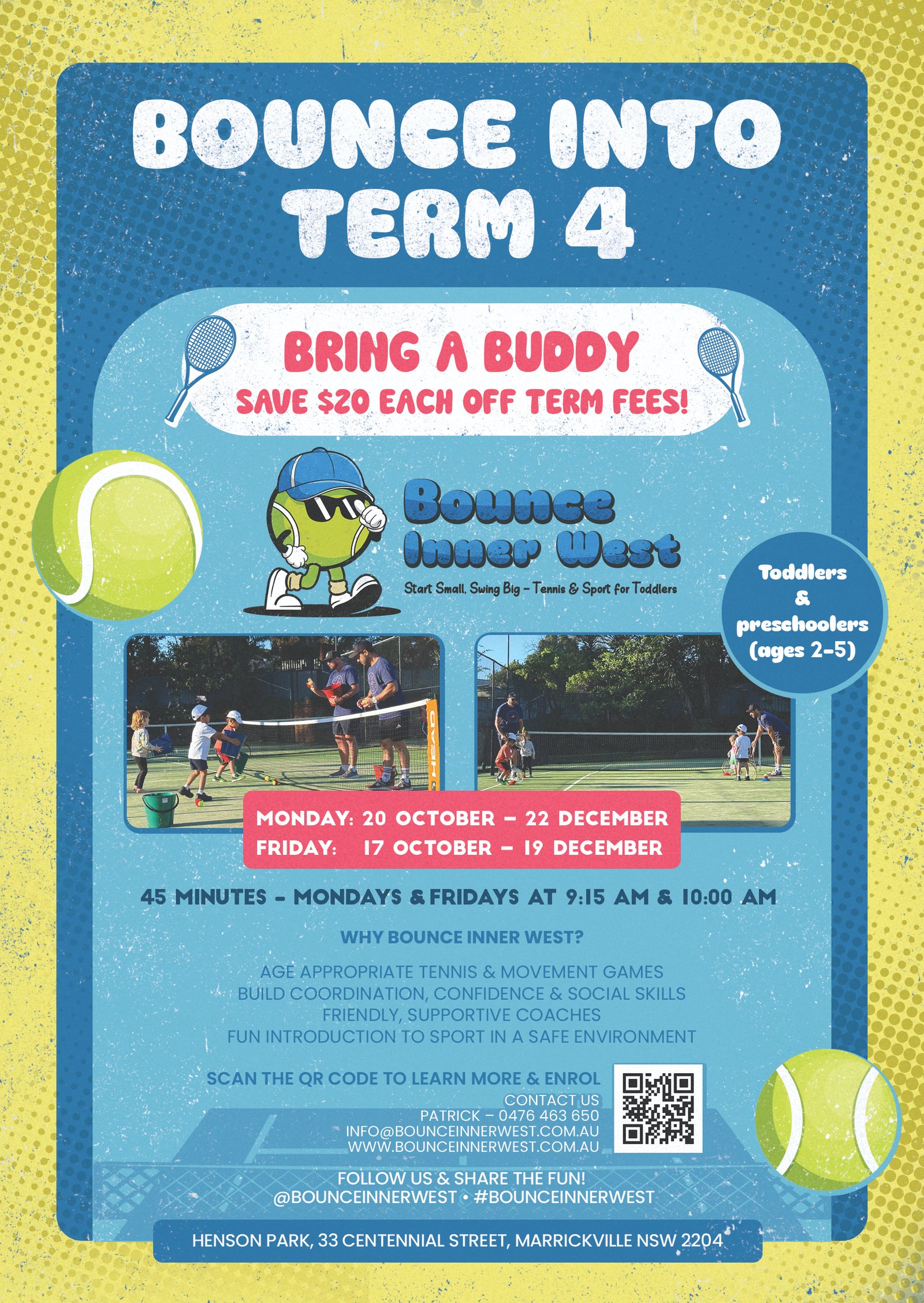 Bounce Inner West runs fun, energetic sport classes for kids aged 2-5, with a focus on tennis. We help little ones grow confidence, motor skills, coordination, and a love of movement through exciting activities.